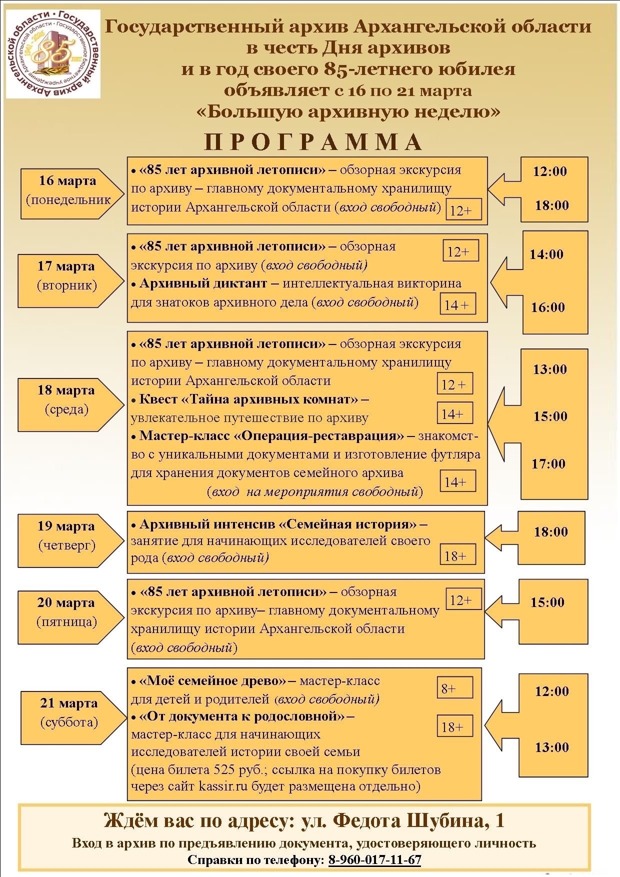 Внимание, внимание! С 16 по 21 марта Государственный архив Архангельской области приглашает в гости!