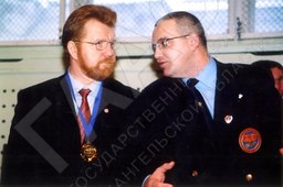 V чемпионат мира по Таэквон-до. Анатолий Антонович Ефремов – Глава администрации Архангельской области, председатель организационного комитета чемпионата, Николай Валентинович Потеряев – советник главы администрации Архангельской области по спорту, директор исполнительной дирекции по подготовке и проведению чемпионата
